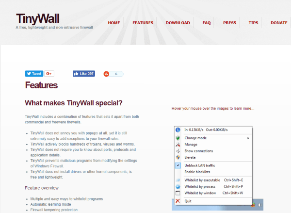 TinyWall — моя последняя рекомендация для бесплатного программного обеспечения брандмауэра, чтобы вы были в безопасности. Он немного отличается от других тем, что на самом деле это вовсе не брандмауэр. TinyWall является отвердителем для брандмауэра Windows. Это означает, что он предназначен для того, чтобы сделать встроенный межсетевой экран более удобным, более управляемым и более мощным.
