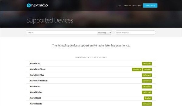 Недостатком попытки прослушивания радио без данных является то, что не все сети поддерживают чип FM в своих телефонах. NextRadio имеет список поддерживаемых телефонов, чтобы вы могли проверить, совместим ли ваш телефон. Если на вашем телефоне установлена FM-микросхема, вы на шаг ближе к бесплатному радио. Установите флажок Фильтр на странице NextRadio и выберите своего оператора, чтобы узнать, разрешают ли они FM-трансляции. Если ваш телефон и оператор позволяют, вы золотые.