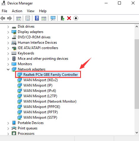 2) Развернуть Сетевые адаптеры категорию и найдите драйвер сетевой карты.