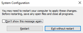 4) Убедитесь, что вы сохранили важные файлы и выберите Запустить снова. Если вы слишком заняты сейчас, выберите Выход без перезагрузки и перезагрузите компьютер позже, чтобы изменения вступили в силу.