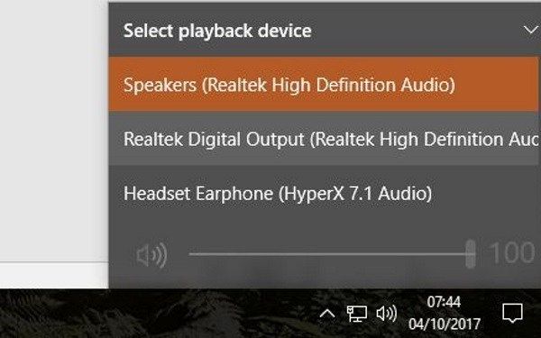 В зависимости от того, насколько эффективно вы установили Windows 10 или ее аудиодрайверы, бывают случаи, когда одно и то же аудиоустройство отображается в списке дважды. Если вы видите это, выберите один и протестируйте воспроизведение. Если это не работает, выберите другой и повторите тестирование.