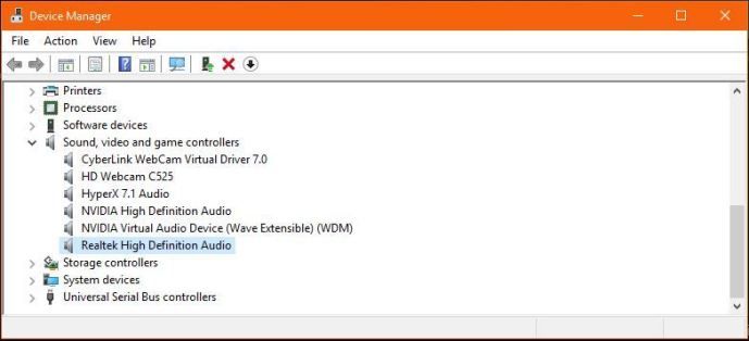 - Выберите Sound, video и игровые контроллеры и раскройте список.