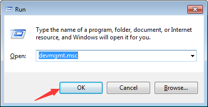 2. Тип devmgmt.msc в окне запуска и нажмите Хорошо кнопка. Это открыть диспетчер устройств.