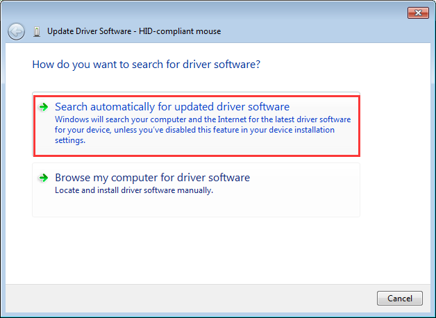 4. Выберите Автоматический поиск обновленного программного обеспечения драйвера. Затем Windows установит новый драйвер автоматически.
