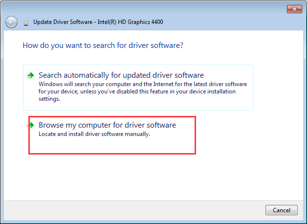 4. Выберите Просмотрите мой компьютер для программного обеспечения драйвера.
