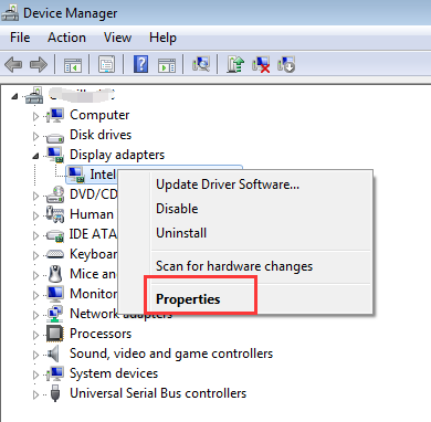 1. В диспетчере устройств щелкните правой кнопкой мыши графическую карту (используемую карту) и выберите свойства.