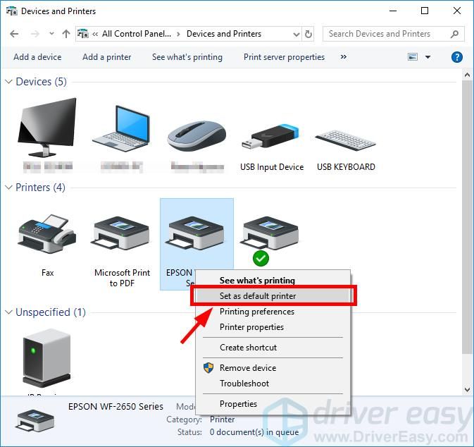 Способ 2. Установите принтер в качестве принтера по умолчанию