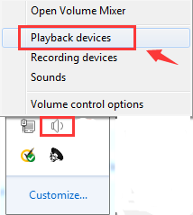 1) Щелкните правой кнопкой мыши значок громкости и выберите Устройства воспроизведения.