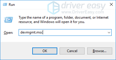 - Тип devmgmt.msc и нажмите Войти получить доступ к диспетчеру устройств.