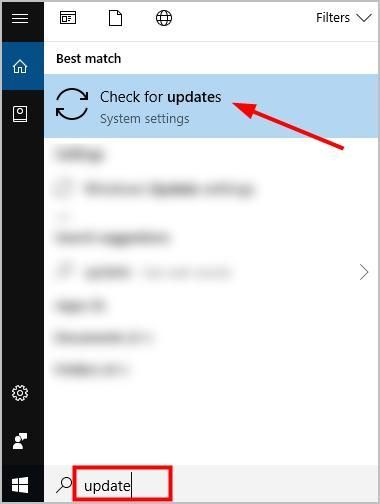 - Тип Обновить в окне поиска Windows, затем выберите Проверьте наличие обновлений или же Центр обновления Windows.
