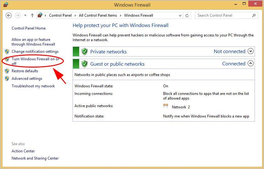 ЗаметкаПожалуйста, включите брандмауэр Windows позже.