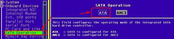 - Измените операцию SATA