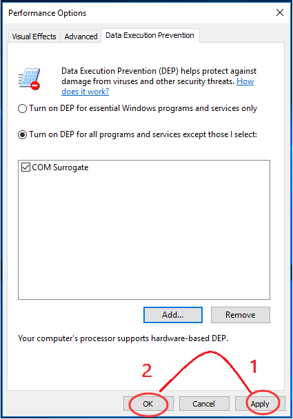 COM Surrogate — это исполняемый хост-процесс (dllhost.exe) фоновый режим при просмотре файлов или папок. Добавление его в список исключений DEP также может помочь вам решить проблему.