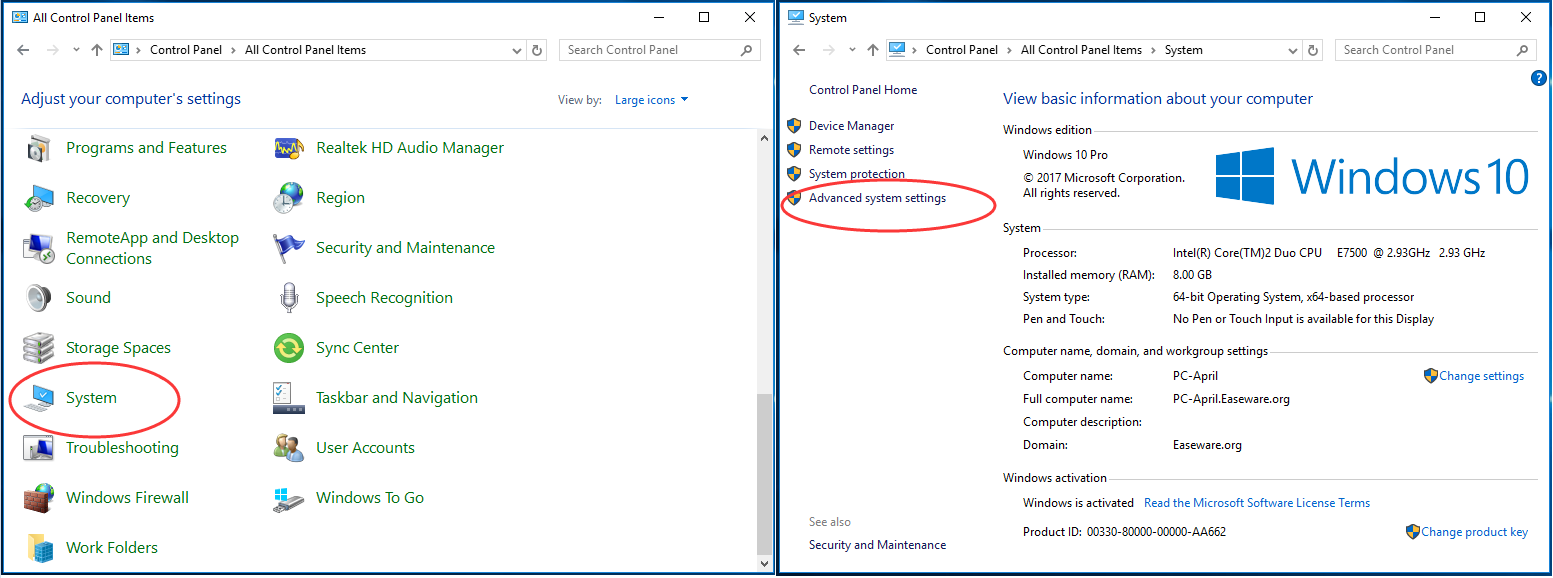 3) Нажмите система когда Просмотр по Большие или Маленькие значки. Затем нажмите Расширенные системные настройки во всплывающем окне.