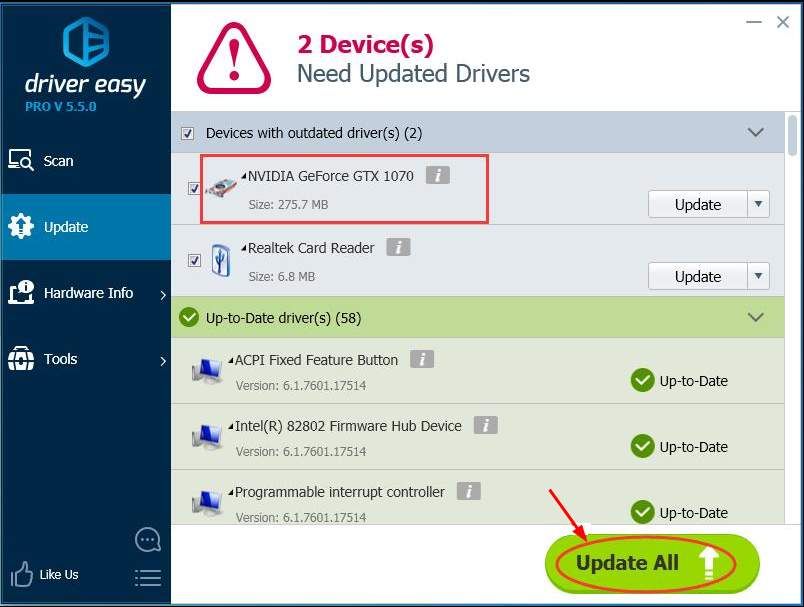 Вы можете сделать это вручную, загрузив последние версии драйверов с официального сайта производителя вашей видеокарты. Вам нужно будет найти именно тот драйвер, который вам нужен. Если вы не уверены, что можете поиграть с водителями вручную или хотите сэкономить время, вы можете использовать Водитель Легко сделать это автоматически.