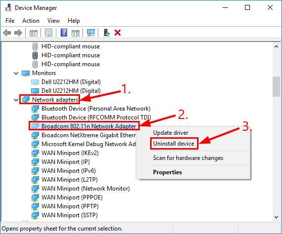 Мы также можем попробовать переустановить наш драйвер WiFi, чтобы увидеть, исправляет ли он сеть WiFi не найдена проблема. Для этого:
