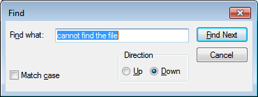 3. Нажмите Ctrl ключ и F ключ, чтобы открыть окно поиска. Тип не могу найти файл в поле поиска, затем начните поиск.