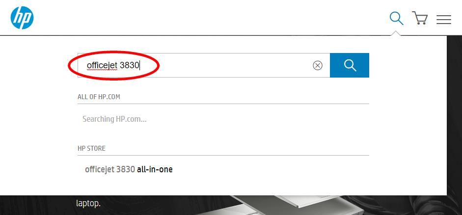 1) Перейти к Официальный сайт HP и поиск «officejet 3830».