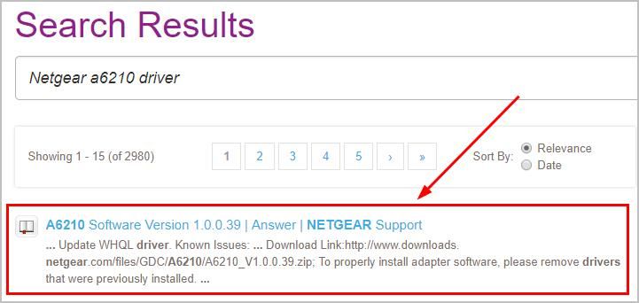 - Тип Netgear A6210 драйвер в поле поиска и нажмите Войти.