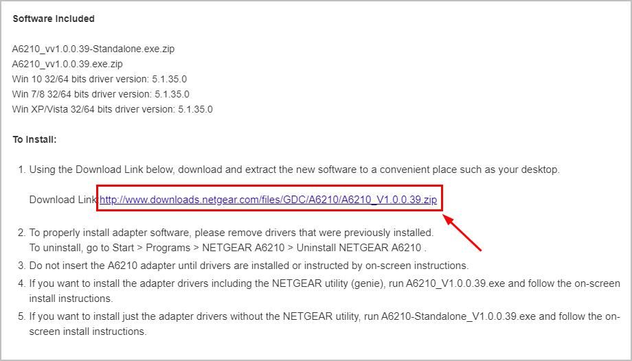 - A6210-Standalone_V1.0.0.39.exe если вы хотите установить свой Netgear a6210 драйвер адаптера БЕЗ Утилита NETGEAR.