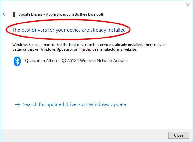 - Если нет, и вместо этого вы получили сообщение Лучшие драйверы для вашего устройства уже установлены, тогда вам, возможно, придется выполнить следующие шаги, чтобы получить последнюю версию драйвера для вашего Atheros товар. Поскольку сообщение не всегда верно, и Windows может не спешить с выпуском драйверов.