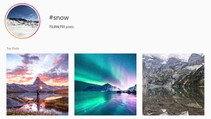 Допустим, вы пометили свое видео или фото с помощью #snow. Этот тег использовался на более чем 73 миллионах постов.