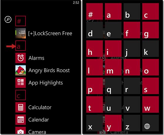 - Нажмите букву подход. Если у вас есть 45 или более приложений в списке приложений. Буквы волшебным образом появятся. В этом случае вы можете нажать любую букву, чтобы увидеть алфавитный список, а затем нажмите другую букву, чтобы перейти туда.