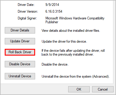- Нажмите на Водитель вкладка, а затем нажмите Откат драйвера.