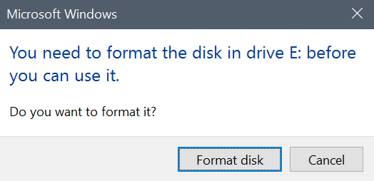 Если Windows попросит отформатировать раздел при вставке в USB-накопитель
