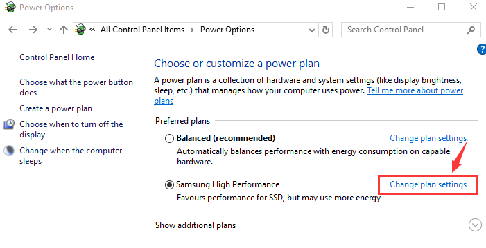 5) Нажмите Изменить настройки плана для того плана, который у вас есть сейчас.