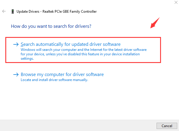 3) Выберите Автоматический поиск обновленного программного обеспечения драйвера.