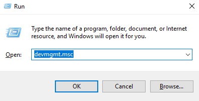 1) На клавиатуре нажмите Ключ Windows а также р в то же время, затем введите devmgmt.msc и ударил Войти.