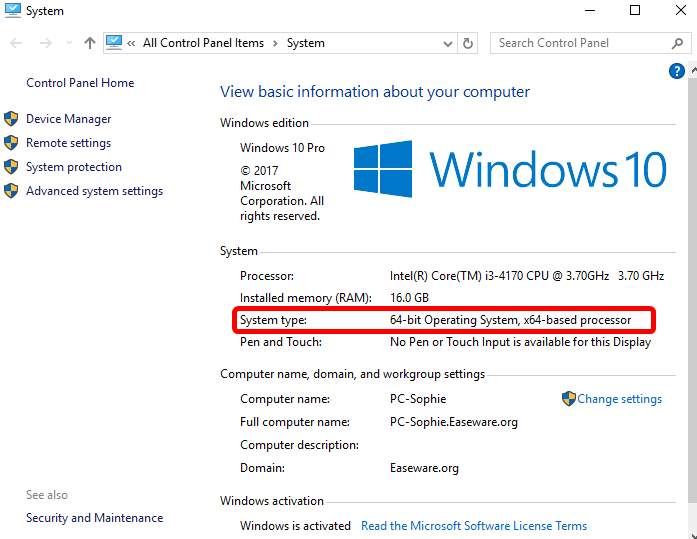 Обратите внимание, что если вы не уверены, какая у вас операционная система, нажмите Ключ с логотипом Windows а также Пауза / Перерыв одновременно нажмите на клавиатуре. Тогда вы сможете увидеть необходимую информацию в Тип системы категория.