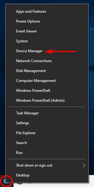 - Щелкните правой кнопкой мыши Начните кнопку, затем выберите Диспетчер устройств.