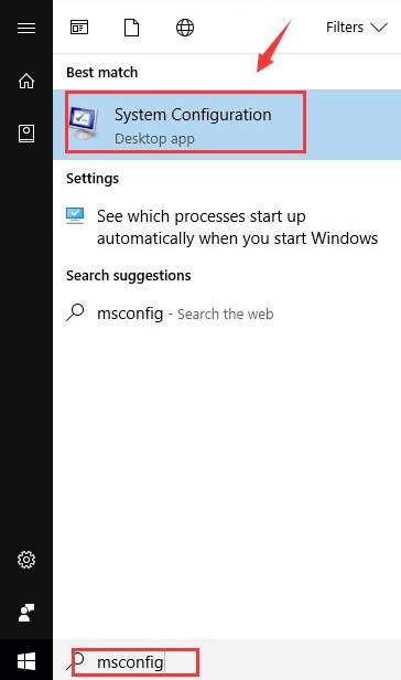 1) Hit Начните кнопку, затем введите MSCONFIG в поле поиска. Тогда выбирай Конфигурация системы из списка выбора.