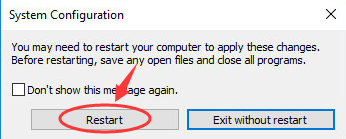 3) Теперь закройте ваши файлы и программы, выберите Запустить снова идти в Безопасный режим.