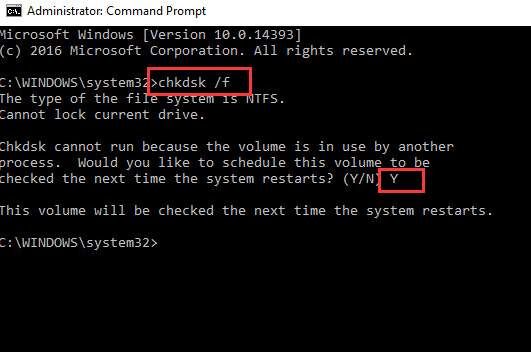 Затем нажмите Y ключ, чтобы дать разрешение на проверку диска при следующем запуске компьютера.