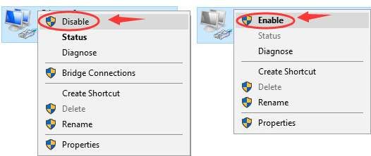 5) Щелкните правой кнопкой мыши свой WiFi-адаптер и выберите запрещать. Немного подождать. Щелкните правой кнопкой мыши свой адаптер WiFi и выберите включить.