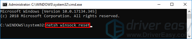 - Тип netsh winsock reset и нажмите Войти.