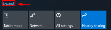 - На клавиатуре нажмите ключ с логотипом Windows а также одновременно открыть центр событий (вы также можете получить к нему доступ, нажав на значок пузыря в правом нижнем углу экрана). Если оно свернуто, нажмите расширять расширить его.