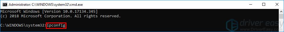 - В командной строке введите IPCONFIG и нажмите Войти.