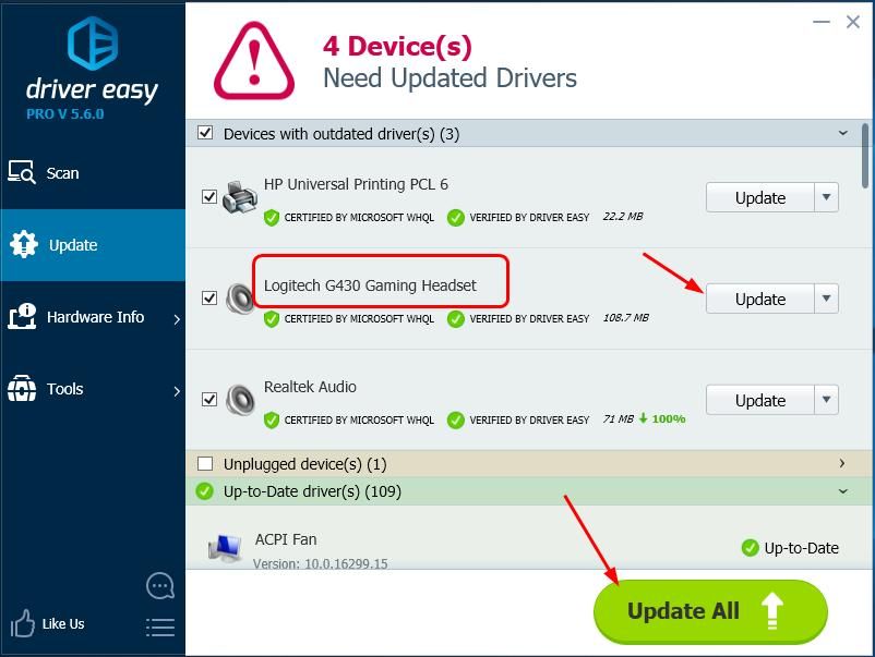 Вы можете автоматически обновить драйверы с помощью БЕСПЛАТНОЙ или Профессиональной версии Driver Easy. Но в версии Pro это займет всего 2 клика (и вы получите полную поддержку и 30-дневную гарантию возврата денег):
