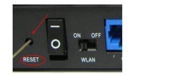 1) Используйте булавку или кончик ручки, чтобы удерживать кнопку сброса модема в течение 30 секунд.