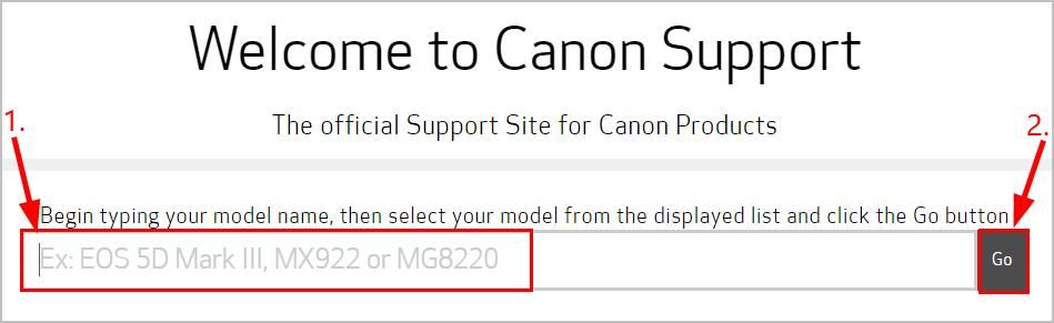 - Тип имя вашего продукта Canon и нажмите Идти.